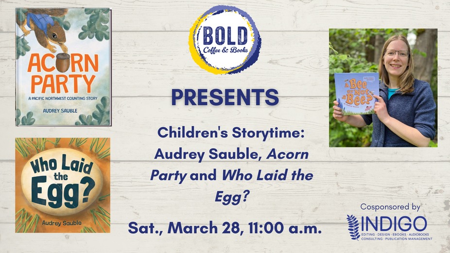 BOLD is thrilled to host a special children’s storytime withAudrey Sauble, author of Acorn Party and Who Laid the Egg?