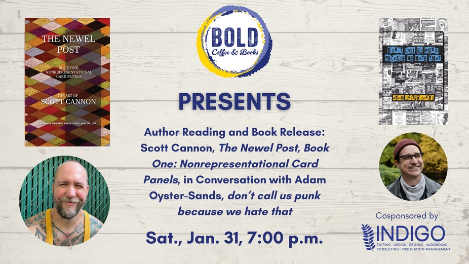 BOLD is thrilled to host a reading and book release with Scott Cannon, author of The Newel Post, Book One: Nonrepresentational Card Panels, in conversation with Adam Oyster-Sands, author of don’t call us punk because we hate that.