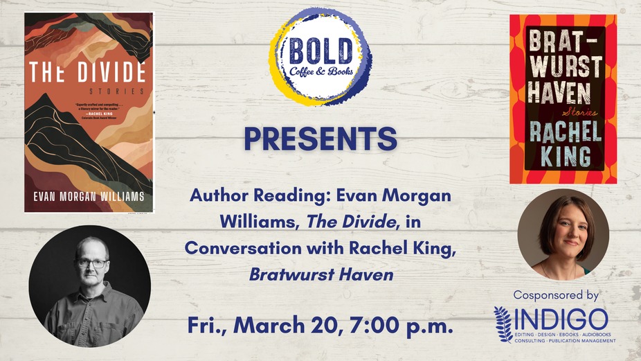 BOLD is thrilled to host a reading with Evan Morgan Williams, author of The Divide, in conversation with Rachel King, author of Bratwurst Haven.