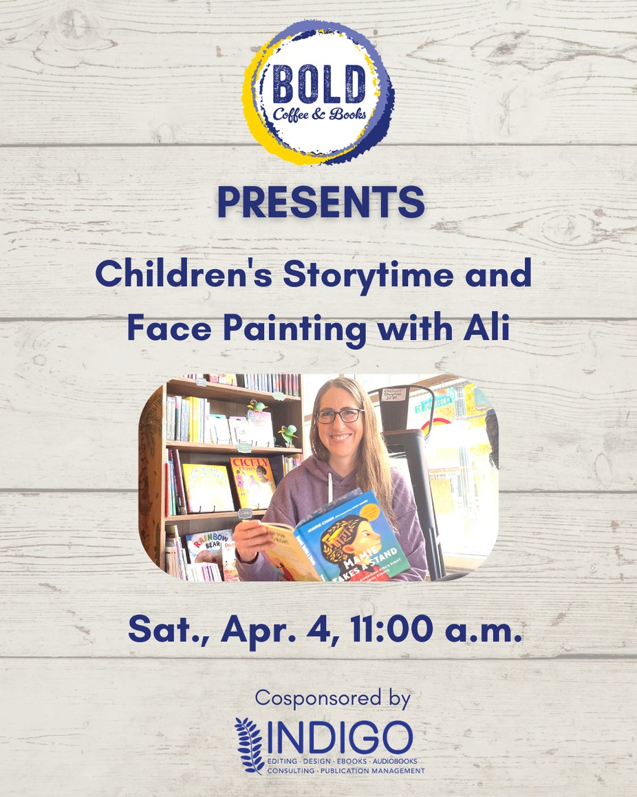 Come join Ali Shaw of Bold Coffee & Books for a fun storytime followed by face painting. Hear some stories, make some friends, and leave with art. What an amazing way to spend a Saturday!
