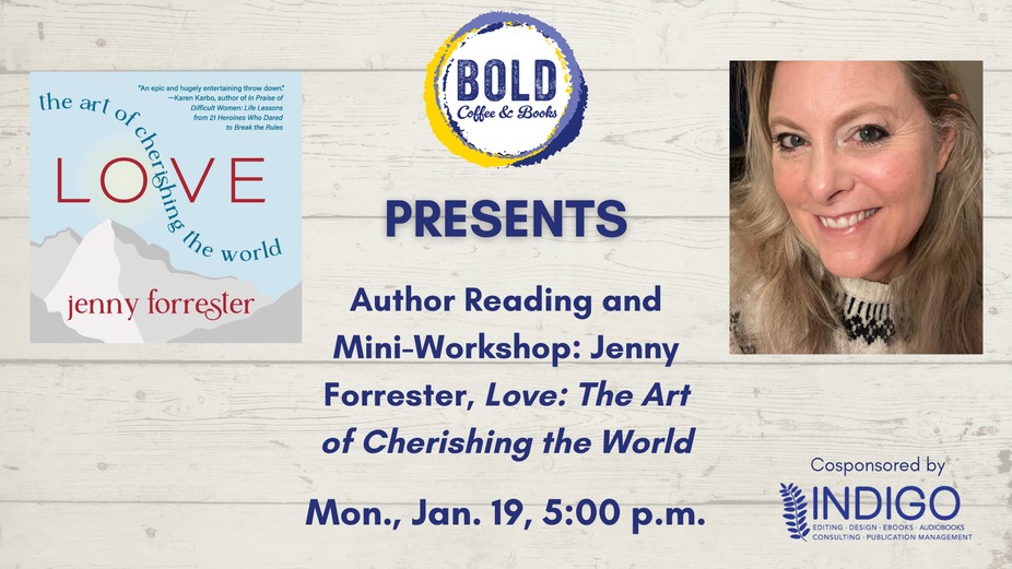 BOLD is thrilled to host a reading and min-workshop with Jenny Forrester, author of Love: The Art of Cherishing the World.