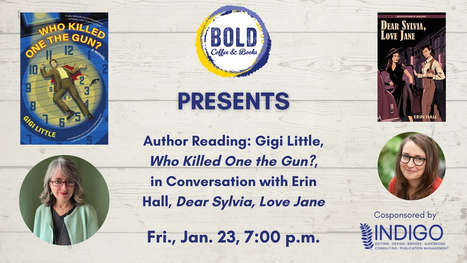 BOLD is thrilled to host a reading with Gigi Little, author of Who Killed One the Gun? (Forest Avenue), in conversation with Erin Hall, author of Dear Sylvia, Love Jane, a BOLD Coffee & Books best-seller.